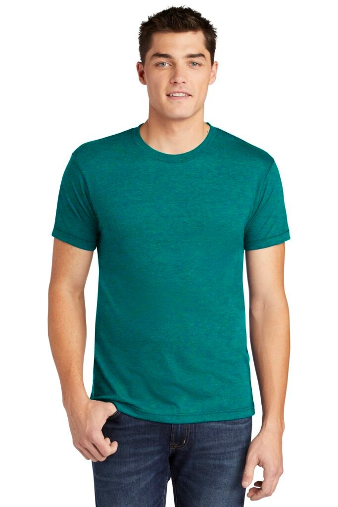 4-ounce 50/25/25 poly/combed ring spun cotton/rayon Tear Away label; transitioning to recycled material Shoulder-to-shoulder taping Relaxed fit side-seamed body