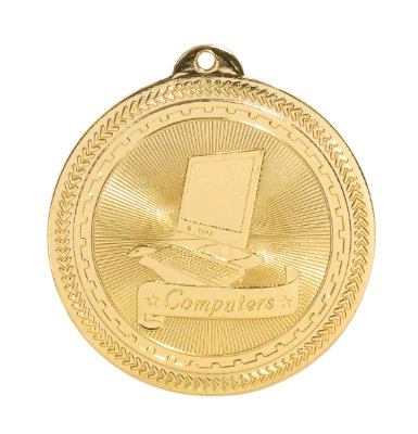 2 inch BriteLazer Medals offer a beautiful shine. Flip this medal over and you are met with a black background that is laserable! They are offered in 3 colors- Bright Gold, Bright Silver and Antique Bronze. Do not forget to add neck ribbon to complete this piece. They are easily customizable by rotary engraving, laser engraving, diamond drag engraving and burnishing.