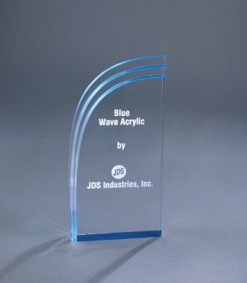 Premier Acrylic is the ultimate way to recognize and honor. Self-Standing Acrylics that are 1 inch thick. They come in 2 styles- Wave and Round, 2 colors- blue and gold and multiple sizes. They are easily customizable by either rotary engraving or laser engraving.