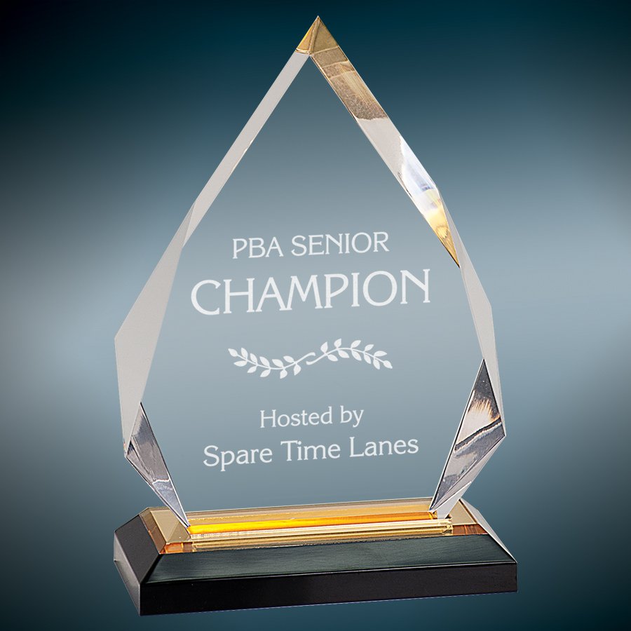 Make a big impression with the Impress line of Premier Acrylics Awards. Diamond Impress Acrylics come with a colored mirror base. They include adhesive on acrylic bottom for permanent attachment. Acrylics are shipped unattached. They are 1 inch thick and size includes the base. They come in 3 different sizes and 3 colors- blue, gold and silver. They are easily customizable by either rotary engraving or laser engraving.