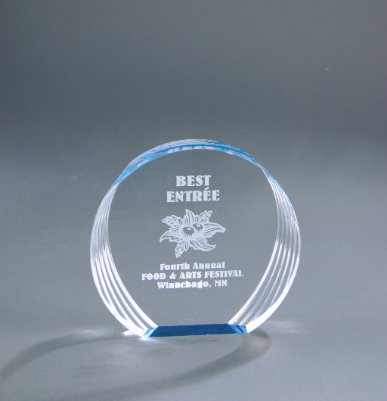 Premier Acrylic is the ultimate way to recognize and honor. Self-Standing Acrylics that are 1 inch thick. They come in 2 styles- Wave and Round, 2 colors- blue and gold and multiple sizes. They are easily customizable by either rotary engraving or laser engraving.