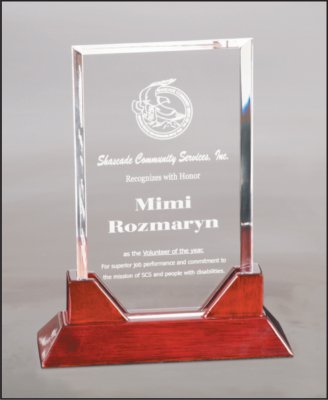 Premier Acrylic is the ultimate way to recognize and honor. Prestige Acrylics have ½ inch thick acrylic with a Rosewood Piano Finish Base. All Prestige Acrylic comes packaged in a velvet lined gift box. They come in 2 styles- Diamond and Rectangle and multiple sizes. They are easily customizable by either rotary engraving or laser engraving.