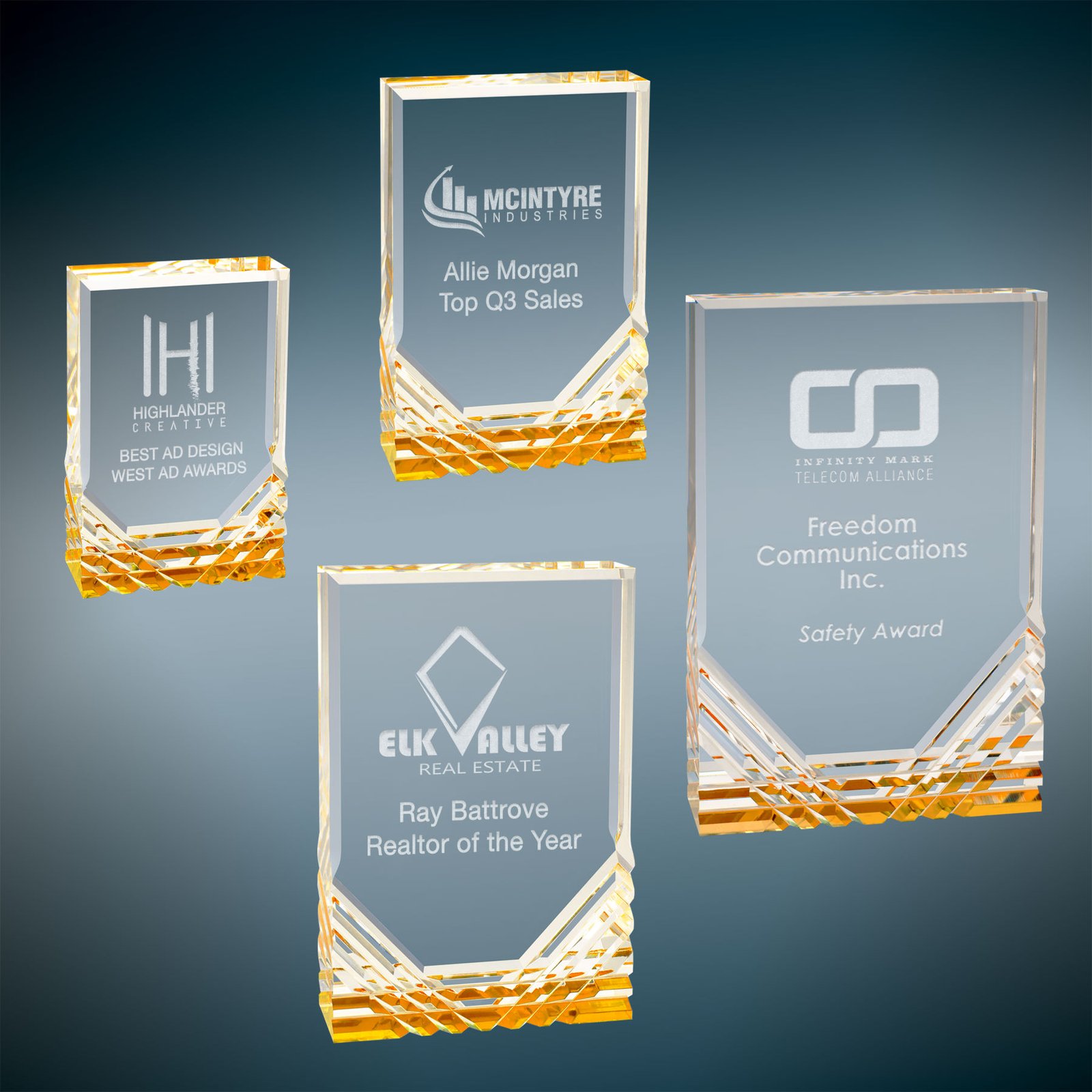 Premier Acrylic is the ultimate way to recognize and honor. Jewel Acrylics Sample set come in green with 4 different sizes with a clear engraving area. They are easily customizable by either rotary engraving or laser engraving.