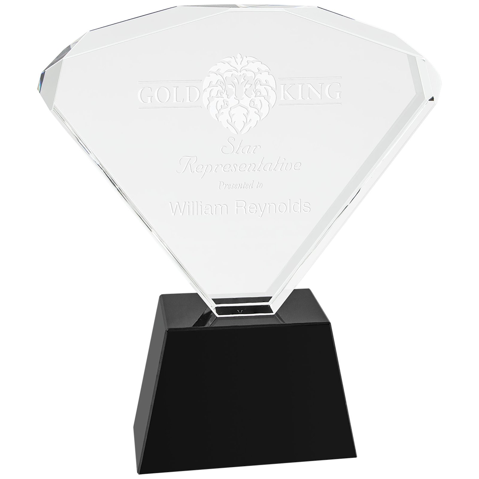 Our Premier Crystal Awards are handmade and may vary slightly in size. Crystal fan attached to black pedestal base. This award is double sided giving two unique looks. Packaged individually in a lined gift box. Premier Crystal is the ultimate way to recognize and honor!