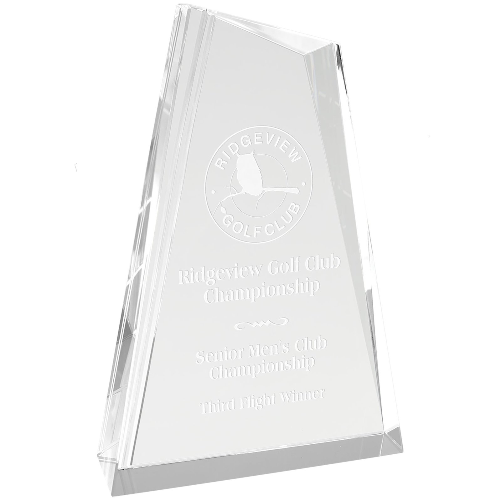 Our Premier Crystal Awards are handmade and may vary slightly in size. Optic crystal peak with decorative lines and bevel edge stands alone or could be attached to a base. Packaged individually in a lined gift box. Premier Crystal is the ultimate way to recognize and honor!