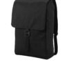 600D poly canvas (solid); 600D heather poly (heather) Main compartment with padded laptop panel Interior organization pockets Front zippered rucksack flap Hook closure on front Exterior side pocket Padded air mesh shoulder straps Luggage trolley pass through on back Laptop sleeve dimensions: 12 h x 11 w x 1 d; fits most 15 laptops Dimensions: 17 h x 10.5 w x 5 d; Approx. 893 cubic inchesNote: Bags not intended for use by children 12 and under.