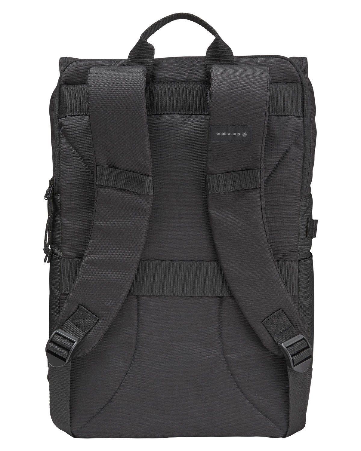 600D recycled polyester made from rPET; Adjust for the day’s activities with the flexible rolltop design that allows space for extra packing; Separate zippered padded laptop pocket, fits most 15″ laptops; Front zippered pocket ; Water bottle holders on each side; Padded straps and back with luggage pass through; Product Size: 10.63″ W x 16.93″ L x 6.10″ D