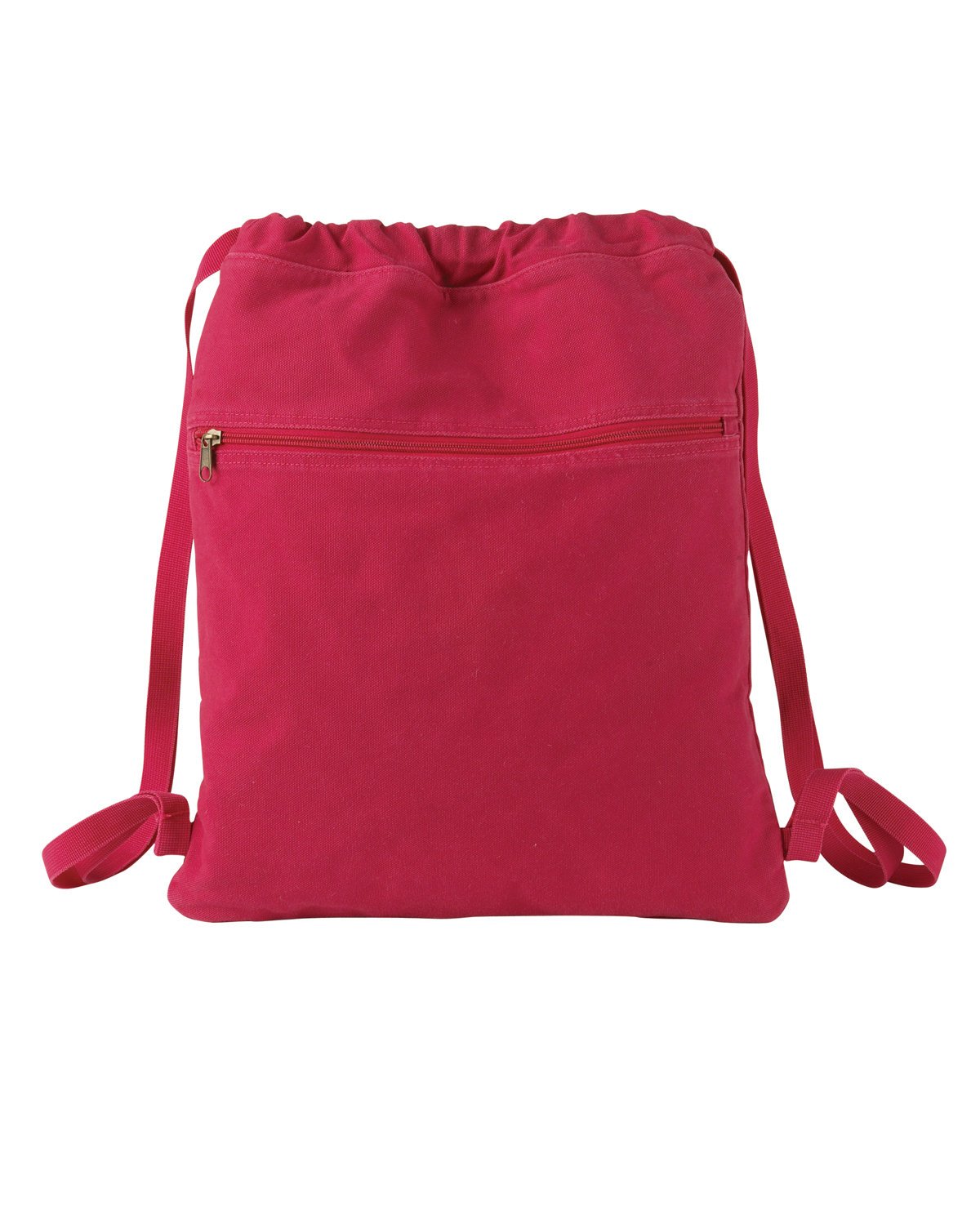 14 oz., 100% cotton canvas; heavy enzyme-washed; cotton webbing straps; zippered front pocket