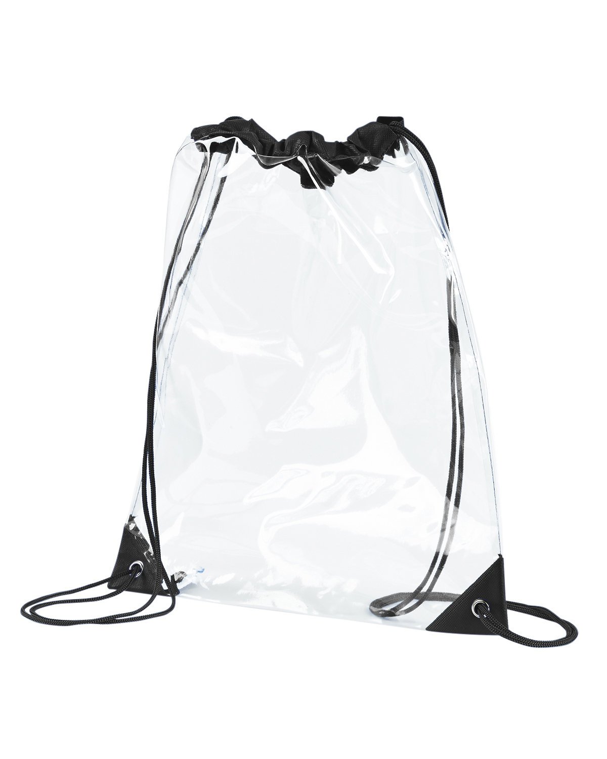 PVC; Clear PVC body; Contrasting binding; Contrasting drawstring straps; 13″W x 16″H ; Requires California Prop 65 Warning Label