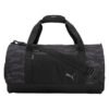 100% polyester; Two-way zip into main compartment; Front external zippered pocket; Internal zippered pocket; Side mesh pocket and side zippered shoe pocket with metal eyelets for ventilation; Top padded grab handle and shoulder strap; Reflective Cat logo and 18 Hole label; Dimensions: 21″ L x 11″ W x 11″ H