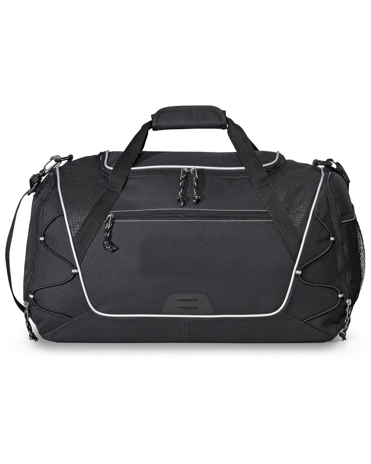 600D polyester; Front zippered pocket; Bungee cords for extra storage; Large u-shaped opening to zippered main compartment; Tone on tone digital print accents provide added appeal; Shoe tunnel with breathable, ventilating mesh; Removable floor board for extra support; Side mesh pocket and side zippered pocket; Padded top grab handles; Removable, adjustable shoulder strap; 22″W x 12″H x 10″D
