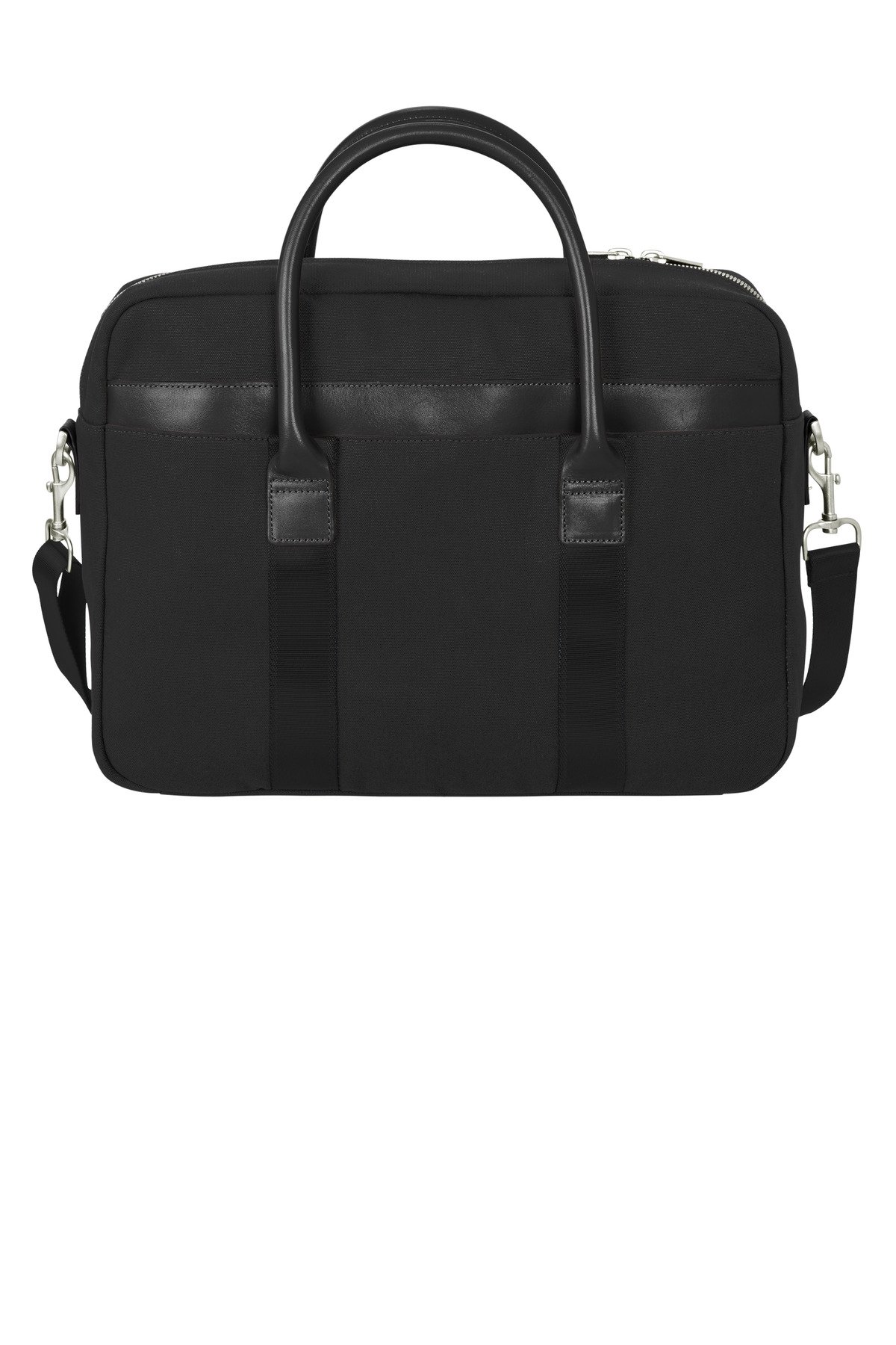 The perfect blend of traditional design and iconic styling this bag can be carried as a briefcase or as a crossbody bag.12-ounce cotton canvas with DWR finishLeather trim and detailsMetal zippered main compartmentPadded laptop compartmentFront zippered pocketBack slip pocketInterior zippered pocketLeather carry handlesMetal zipper pulls with Brooks Brothers logoExterior debossed Brooks Brothers leather labelLaptop compartment: 11.5 h x 15.5 wDimensions: 12 h x 16 w x 4.5 dCapacity: 864 cu. in./14.1 LWeight: 2.56 lbs./1.16 kgNote: Bags not intended for use by children 12 and under.