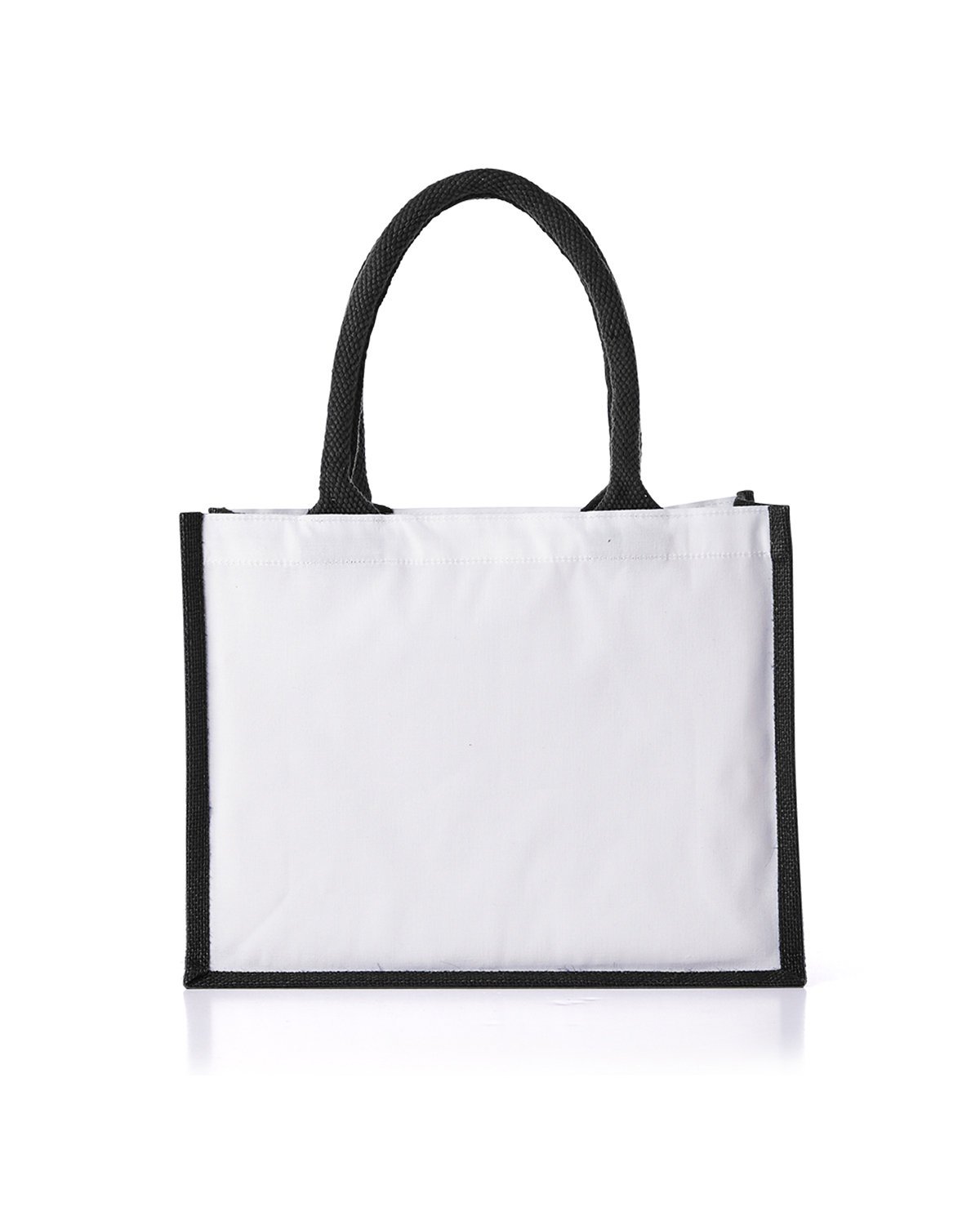 Eco-Responsible tote bag made of Cotton and Jute; Jute fabric derives from renewable plant fiber which can be harvested repeatedly throughout their lifetime (as much as every 4-6 months). In addition, when Jute fiber is made into fabric there is little waste, and most of that waste can be used for other purposes such as insulation and road building. Jute is also compostable; Simple reusable tote bag made of Cotton and Jute; Jute gusset and matching cotton web handles (approx 16″l); To clean wipe with dry cloth; Recommended weight tolerance: 15 lbs; Product Size: 12″ w x 9.8″ h x 4.13″ d