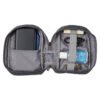 600D recycled polyester; Inner elastic loops; Inner and outer pockets; Designed to fit your needs, tech essentials or travel must haves; 4.7″w x 6.7″h x 2″d