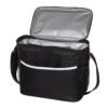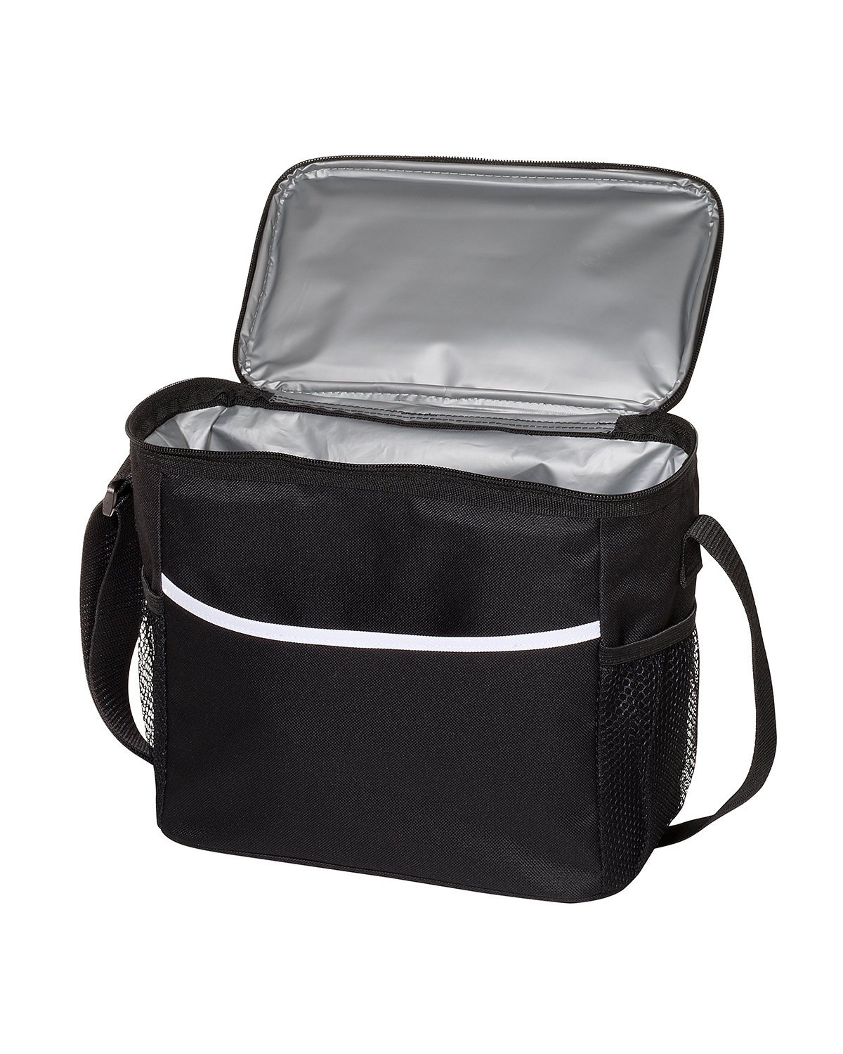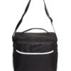 600D Polyester with PVC backing exterior with main large zipper compartment with 4mm EPE foam with PEVA lining ; One front open pocket approx 9.5″w x 5.5″h, holds up to 14 cans of soda; Two side mesh pockets approx 5.5″w x 5″h each; Adjustable shoulder strap (adjusts from 24″l up to 48″l); Hand wash only; Wipe clean with damp cloth; Recommended weight tolerance: 22 lbs; Product Size: 10.25″ w x 9″ h x 6.125″ d