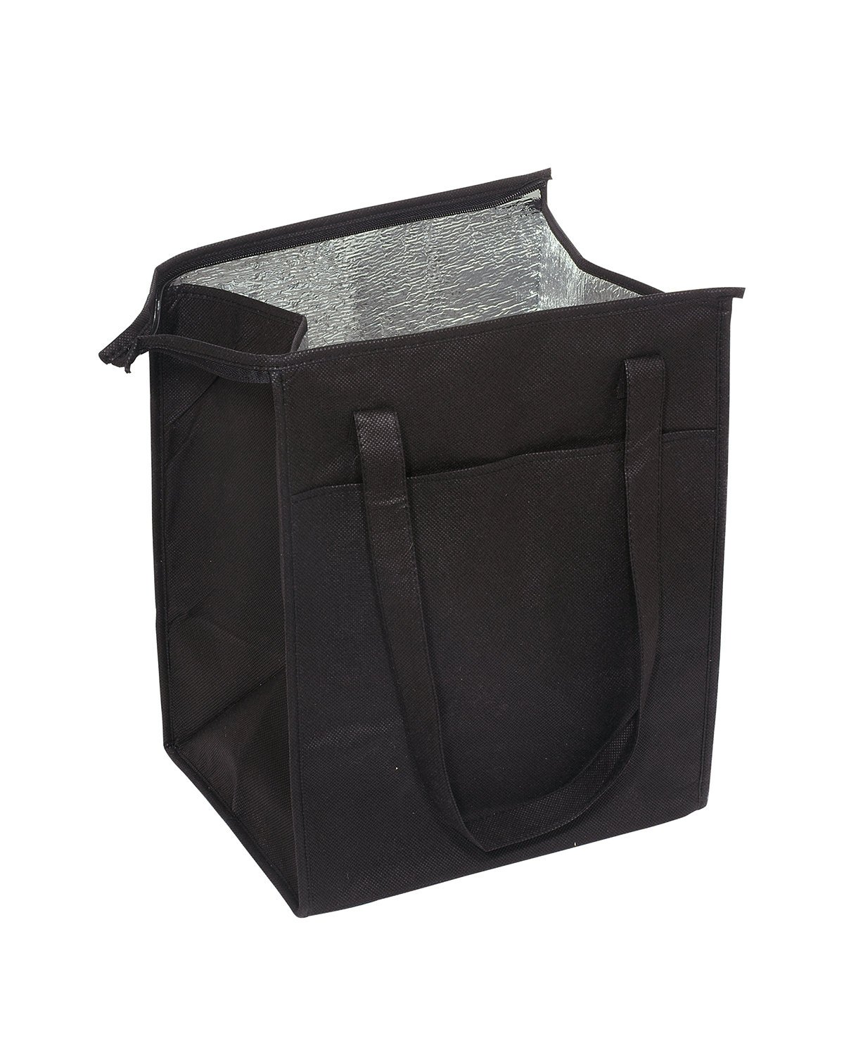 Made from 80 GSM Non-Woven Polypropylene with Aluminum Foil lining; This Eco-Responsible product is both reusable and recyclable; Foil insulation keeps food and beverages hot or cold; Extended zippered closure allows for wide opening; Holds up to 24 cans of soda; Recommended weight tolerance: 10 lbs; Product Size: 11.5″ w x 15″ h x 10″ d