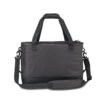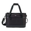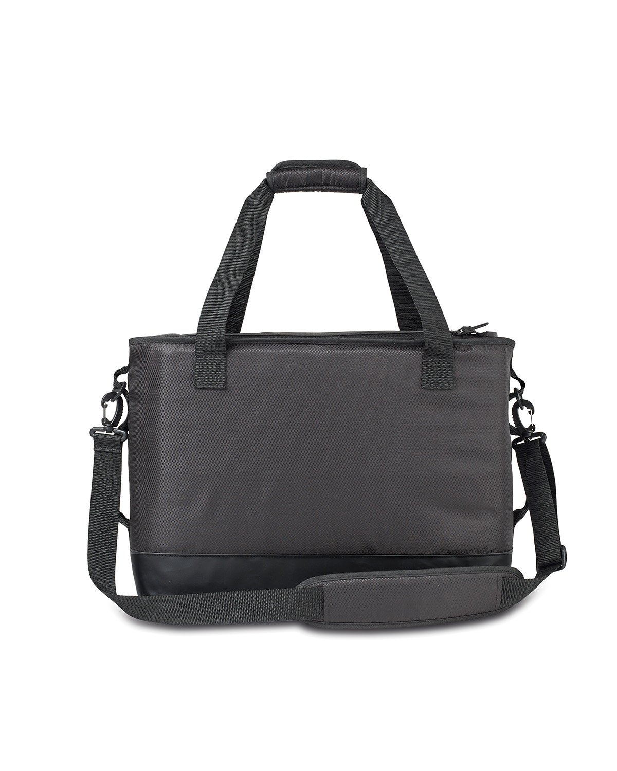 420 Dennier diamond weave polyester ; Leak resistant; Antimicrobial liner for cleaning ease; EPPE Heat-sealed lining, PVC free, Phthalate free; Dual zippered, pull handle opening with folding lid for easy access; Carabineer bottle opener attached; Front zippered pocket for additional storage; Dual carry handles with padded handle wrap; Adjustable, removable shoulder strap with shoulder pad; 45 can capacity, 18″L x 13″H x 7″W