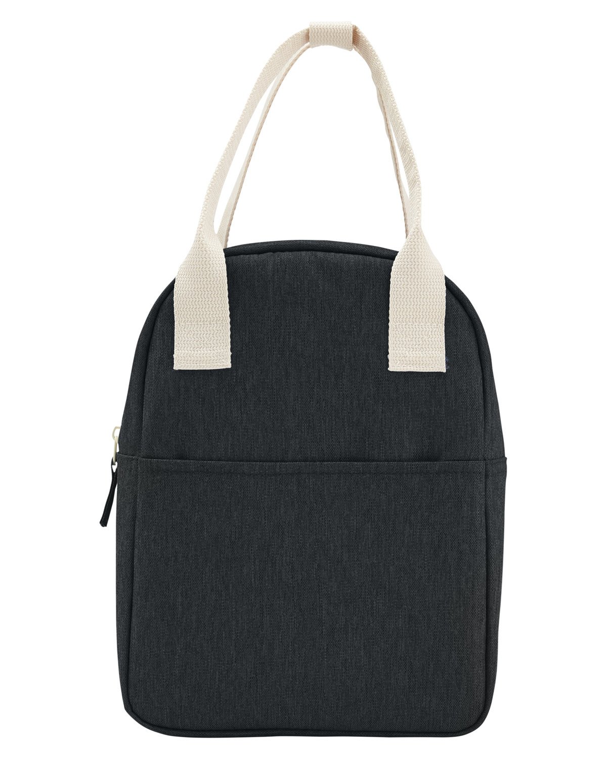 600D recycled 2-tone polyester, PEVA; Big and roomy, celebrate lunch in style; Large main compartment with interior elastic water bottle holder; PEVA lined for spills and easy cleanup; Front slash pocket for your extras; Fun carry handles with snap wrap; Product Size: 8.27″ W x 11.02″ L x 5.12″ D