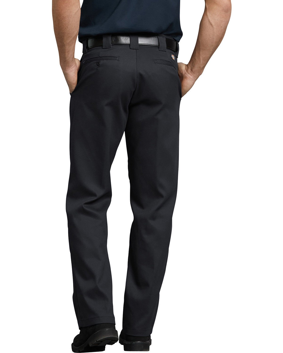 8.2 oz. Mechanical stretch twill, 65% polyester, 35% cotton; Moisture wicking, stain resistant, wrinkle resistant ; Flex fabric for comfort and ease of movement; Sits comfortably at the waist; Slightly tapered legs; Hook-and-eye closure, brass zipper; Welt back pockets; Signature long tunnel belt loops