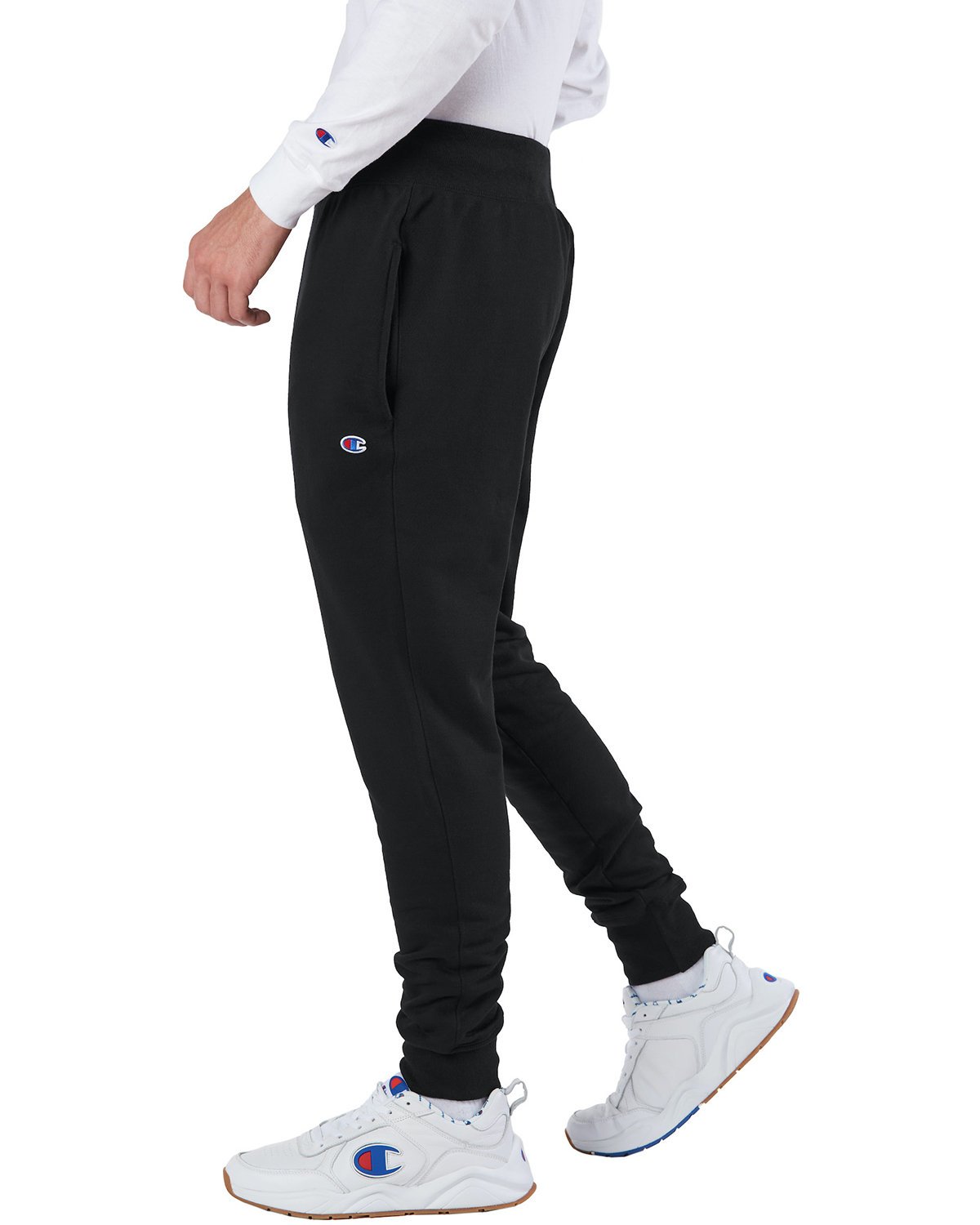 12 oz., 82% cotton, 18% polyester (up to 9.5% recycled); Oxford Gray: 78% cotton/22% polyester; Recycled polyester from plastic water bottles; Side pockets; Back right side pocket; Ribbed waistband with cotton drawcord; Ribbed cuffs; Ribbed gusset; “C” logo at left hip; “A” list status from CDP (Carbon Disclosure Project); Energy Star Partner of the Year (12 consecutive years); Every piece of Champion apparel purchased from our company qualifies for Hanes4Education