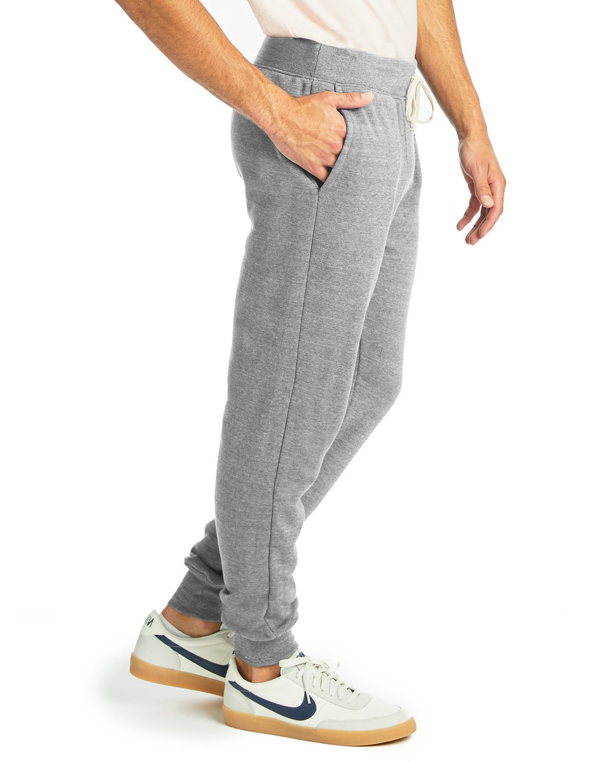 6.5 oz., 30 singles; 50% recycled polyester, 38% cotton, 12% rayon; Ribbed waistband with Natural color drawstring; Two side pockets lined with eco-jersey; Ribbed cuffs; Unisex slim fit; A- list status from CDP (Carbon Disclosure Project); Energy Star Partner of the Year (14 consecutive years); Every piece of Alternative apparel purchased from our company qualifies for Hanes4Education