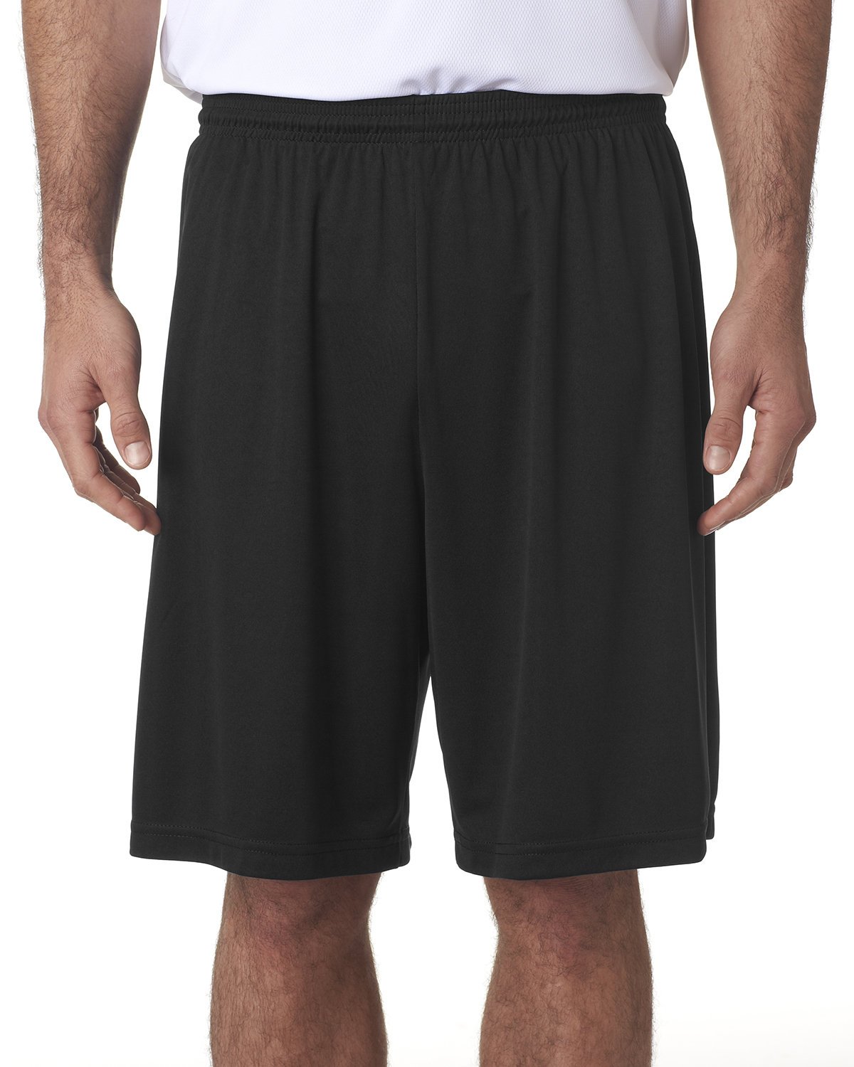 4 oz., 100% polyester; Contains moisture wicking, stain release, and is odor resistant; Ultra tight knit resists snagging; 1 1/2″ Covered waistband with 9″ inseam; Inside drawcord