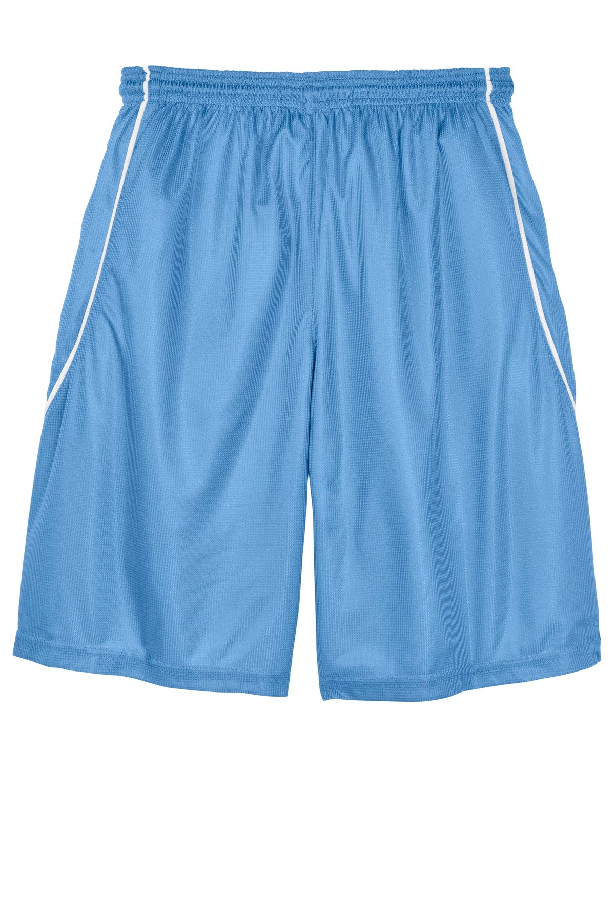 A roomy reversible moisture-wicking short that does double duty with spliced piping details. PosiCharge technology offers superior bleed resistance. 3.2-ounce 100% polyester mesh with PosiCharge technology White mesh reverse with colored piping Double-layer construction with open individually hemmed layers for easy decoration Elastic waistband with continuous loop drawcord 9-inch inseam If applying sublimation special care must be taken throughout the process. Contact your decorator for more details.