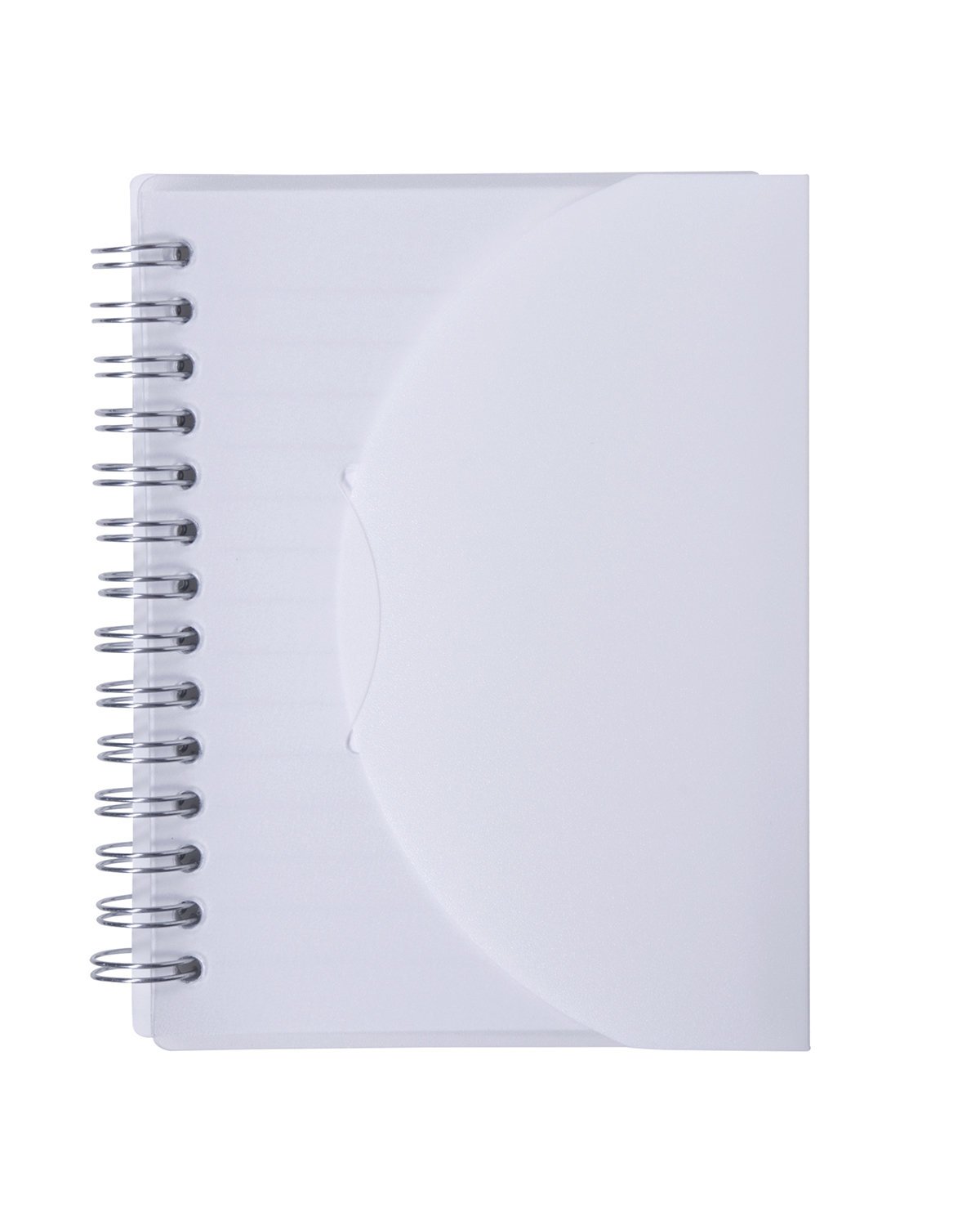 Polypropylene; Spiral-bound notebook with durable and flexible translucent fold-over cover with tab-style closure; Includes approx.80 lined sheets of 3.625″ x 5.125″ notebook paper; Fold-over tab cover protects paper from unnecessary dirt and smudges; Product Size: 4.25″ w x 5.25″ h x 0.5″ d