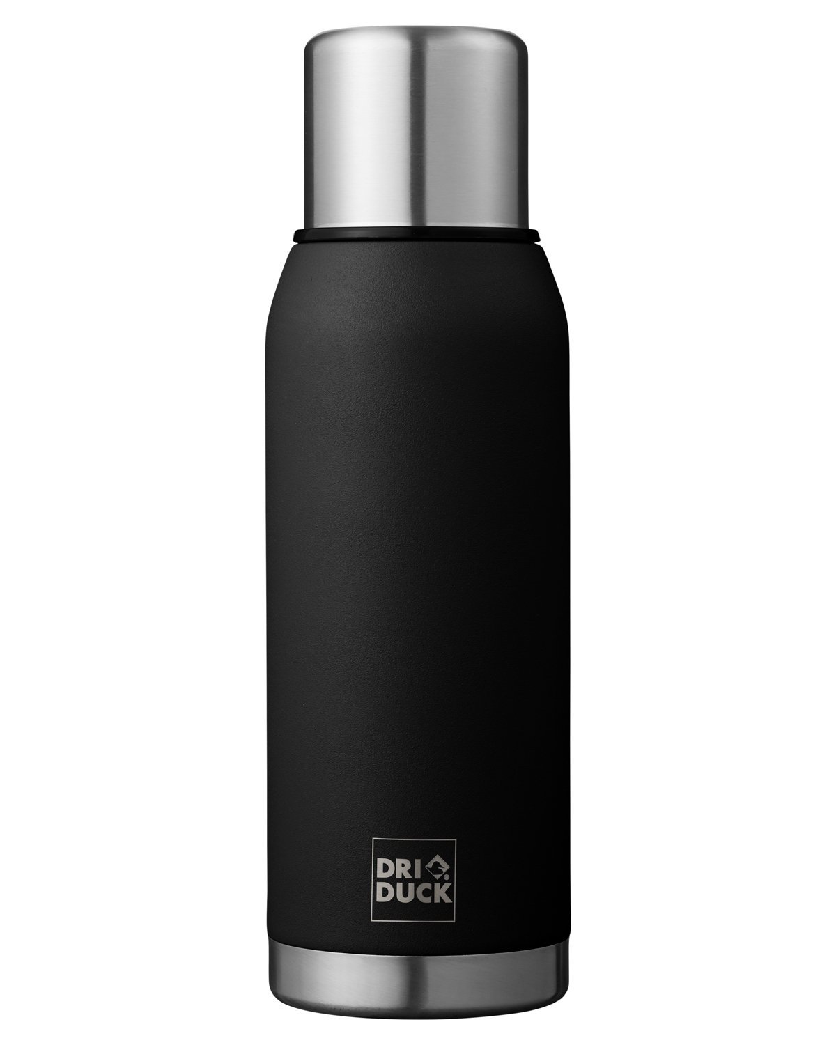 Stainless steel; Double-wall stainless steel, vacuum insulated; Durable, powder coated, no sweat finish; Keeps beverages or food hot for 8 hours and cold for 36 hours; Lid also acts as cup; Keep your thirst quenched all day long; 11.6″h x 3.7″ dia.