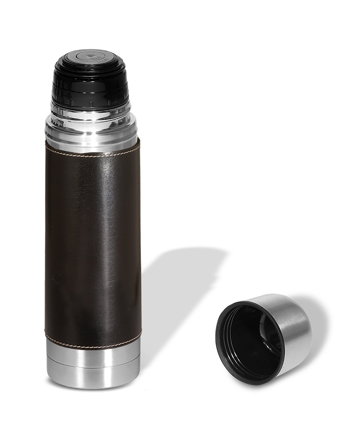 169 oz. (499 mL) Thermal bottle with richly-textured Aristo Bonded Leather sleeve with top and bottom stitched accents and bottle with brushed Stainless Steel finish; 18/0 Stainless Steel exterior with Polypropylene lining; The Bonded Leather sleeve is made of 85% to 90% Post consumer recycled materials, making this an eco responsible product; Keeps drinks hot or cold for hours; Stainless Steel leak-proof screw-on cap; Remove sleeve prior to washing (hand-wash only); Product Size: 10″ h x 2.75″ dia.