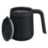 Stainless steel; Modern mug style but made from stainless steel ; Double-wall vacuum insulated ; Intended for both hot and cold liquids; Press on slide lid; Product Size: 5.40″ H x 4.53″ dia.