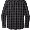 With a traditional buffalo check pattern the lightweight feel of poplin fabric and durable Easy Care features this shirt is something you will want to wear every day. 4.6-ounce 60/40 cotton/poly Bias cut on back yoke Open collar French front Pearlized buttons Rounded adjustable cuffs