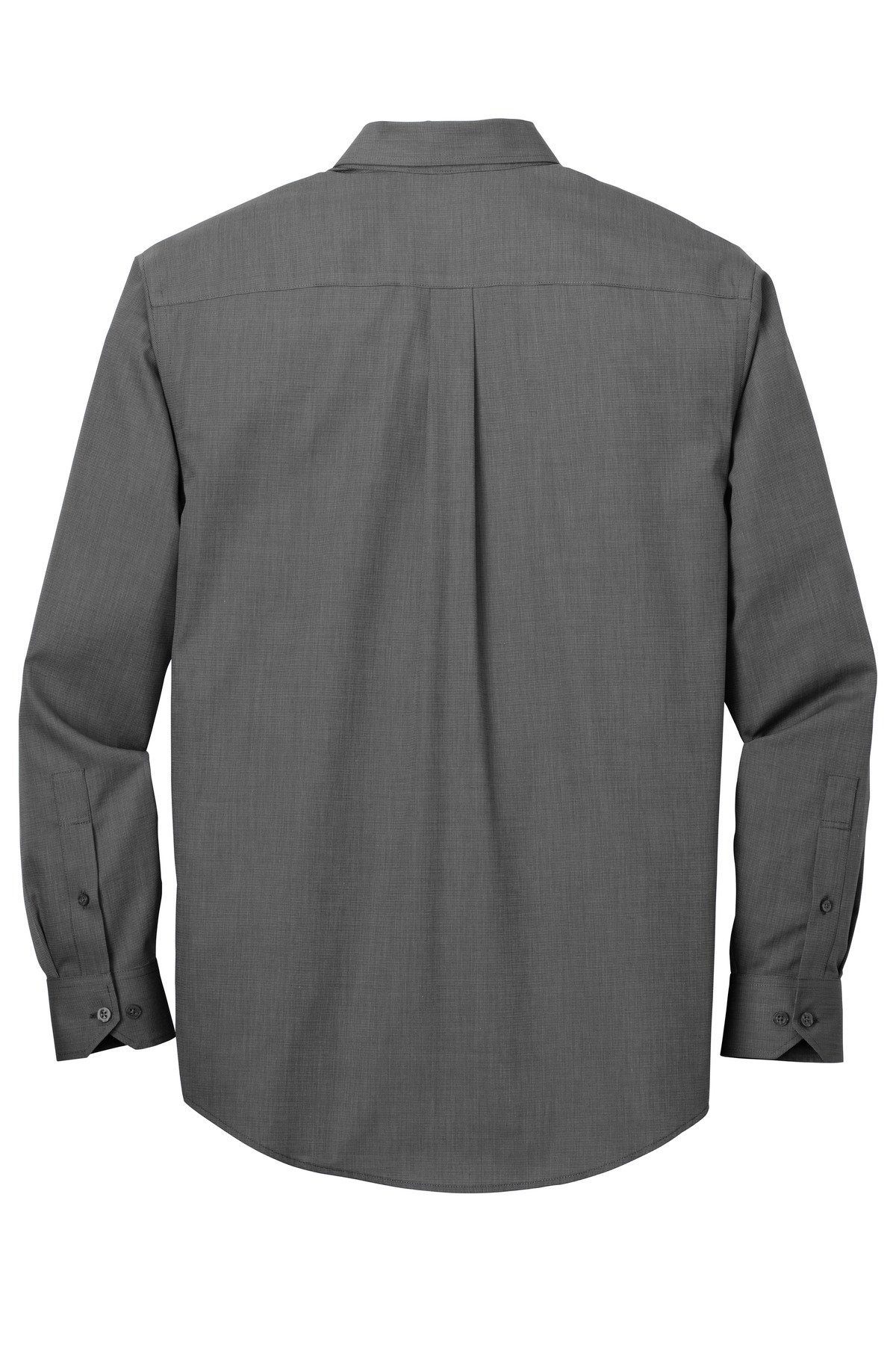 Thoroughly updated this crisp nailhead shirt has a silky feel and a wrinkle-resistant finish for exceptional non-iron performance. 4-ounce 60/40 cotton/polyester with pucker-free taped seams and RH engraved buttons to elevate the office-ready look. Button-down collar left chest pocket back box pleat and mitered adjustable cuffs.