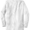 This hardworking IL50 style has a professional stripe and is tested through 50 industrial launderer washes. 4.25-ounce 65/35 poly/cotton with Touchtex technology for superior color retention stain release and wickability Yarn-dyed fabric Open collar with sewn-in stays 7 buttons including button at neck Two button-through pockets Bartacked pencil stall on left pocket