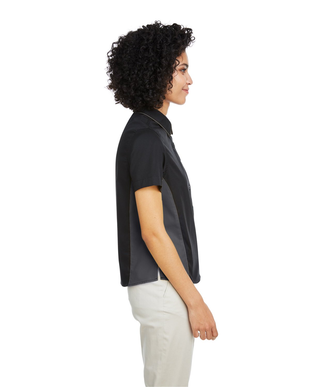 4.5oz/yd2 / 155 gsm ; 55% cotton, 45% polyester twill; Wrinkle-resistant; Stain-release; Contrast collar details; Dyed-to-match pearl buttons; Contrast side vents; Industrial Laundry Tested to 50 washes; Carbon neutral style in partnership with Green Story third party verified carbon offset program. For more information click on carbon neutral link above MSRP.