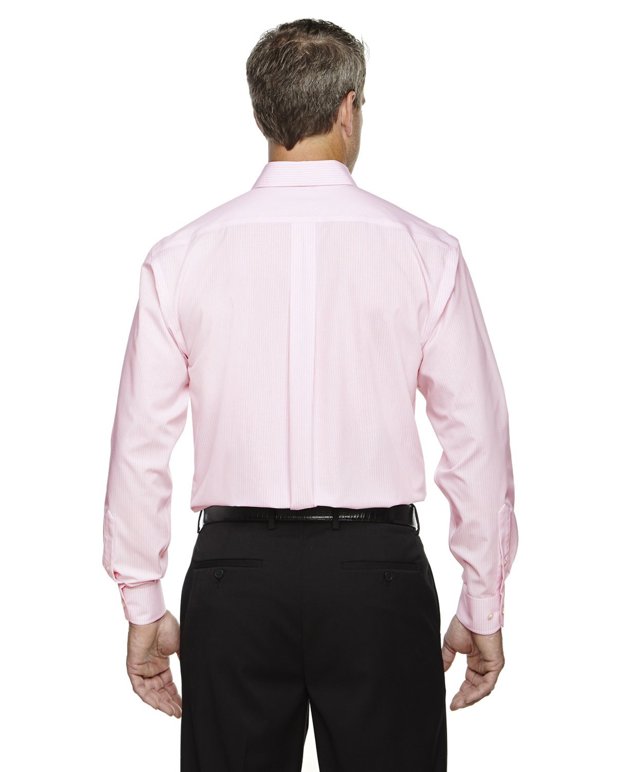 3.4 oz., 55% cotton, 45% polyester; Fine yarn count shirting; True Non-iron performance straight from the dryer; stain release finish; Classic Fit for professional appearance; Patented pucker-free taped seams; Fused collar cuffs and placket; Split back seam with bias cut back yoke; rolled button-down collar; adjustable Comfort Collar for up to an inch of stretch at neck; left-chest pocket; pearlized buttons