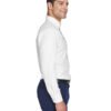 4.1 oz., 60% cotton, 40% polyester; fine yarn count shirting; true Non-iron performance straight from the dryer; stain release finish; Classic Fit for professional appearance; pearlized buttons; patented pucker-free taped seams; specially fused collar, cuffs and placket; split back seam with bias cut back yoke; rolled button-down collar; adjustable “Comfort Collar” for up to an inch of stretch at neck; left-chest pocket