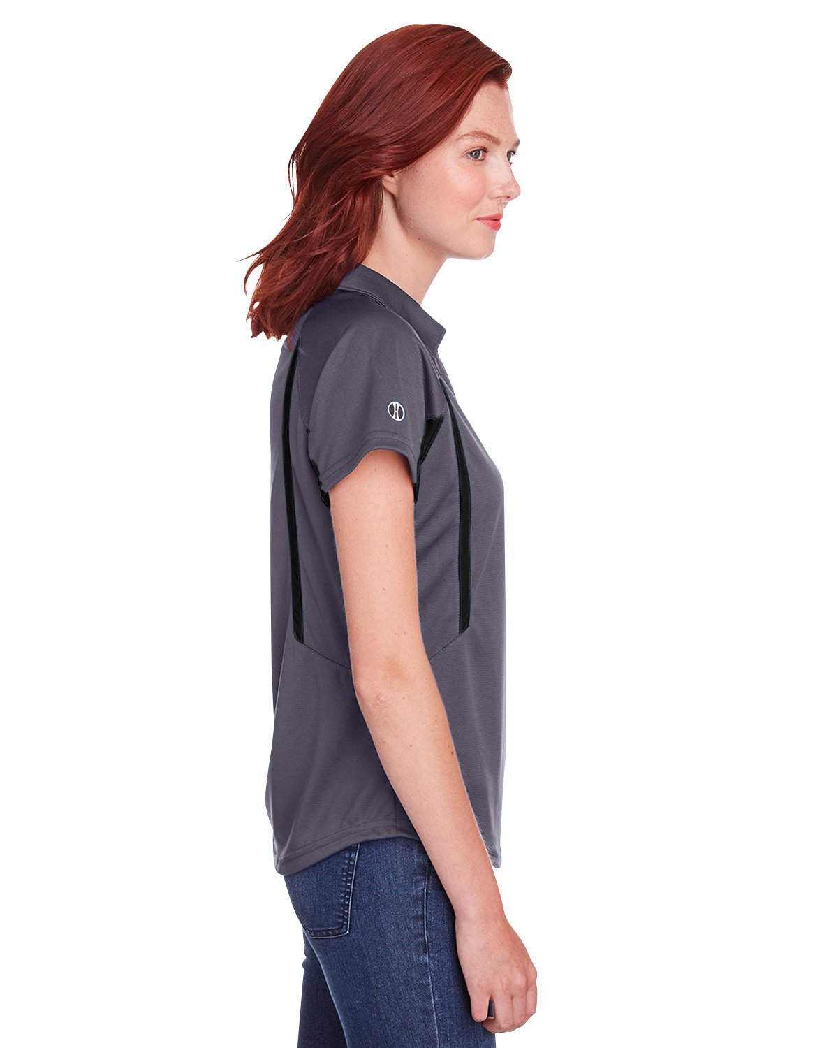 100% polyester dry-Excel horizontal, textured stripe with high mechanical stretch and Snag Resistant technology; 100% polyester inserts; 100% polyester textured stripe; 100% polyester Dry-Excel; horizontal, textured stripe with high mechanical stretch; snag resistant technology; raglan sleeves for maximum mobility; self-fabric collar; v-neckline; contoured hem