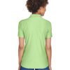 4.8 oz., 100% micro-textured polyester knit; Anti-bacterial; Moisture-wicking; Feminine fit; Flat-knit collar; 3-button placket; Hemmed sleeves; Matching shoulder panels; Side vents; Tagless