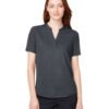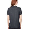 4 oz/yd2 / 142 gsm, 100% recycled polyester embossed print interlock; Moisture-wicking and antimicrobial performance; Partial-open henley with metal two-snap closure; Hi-low hemline ; Side vents