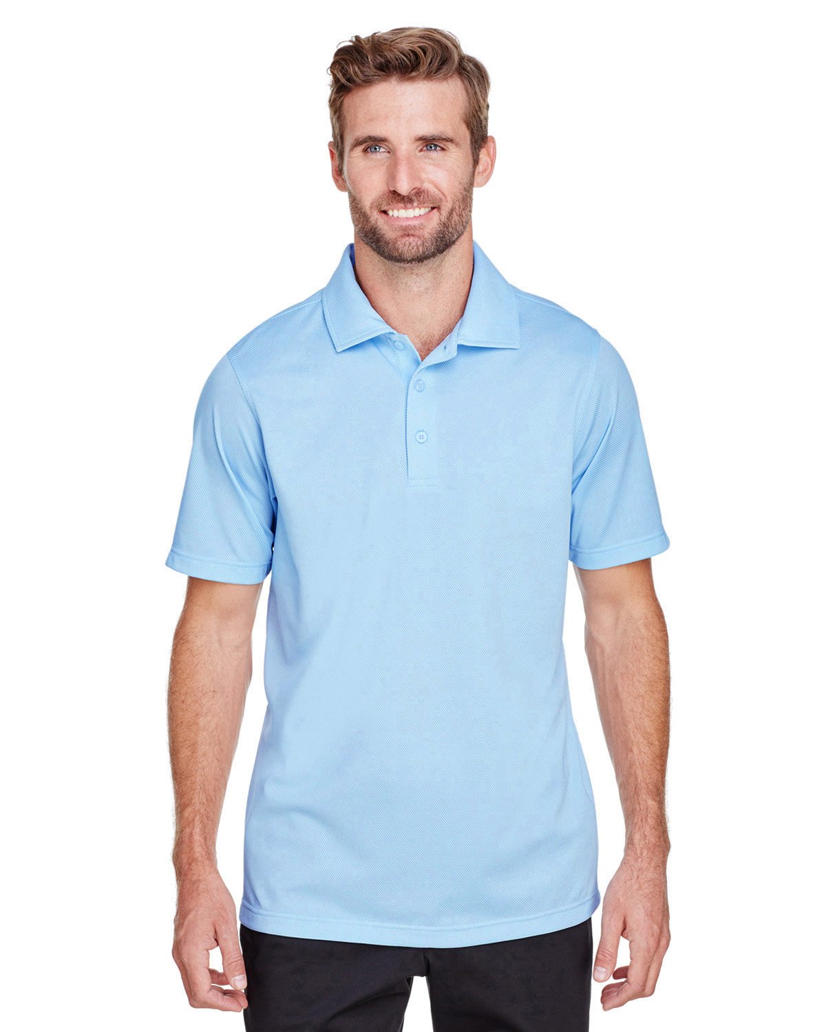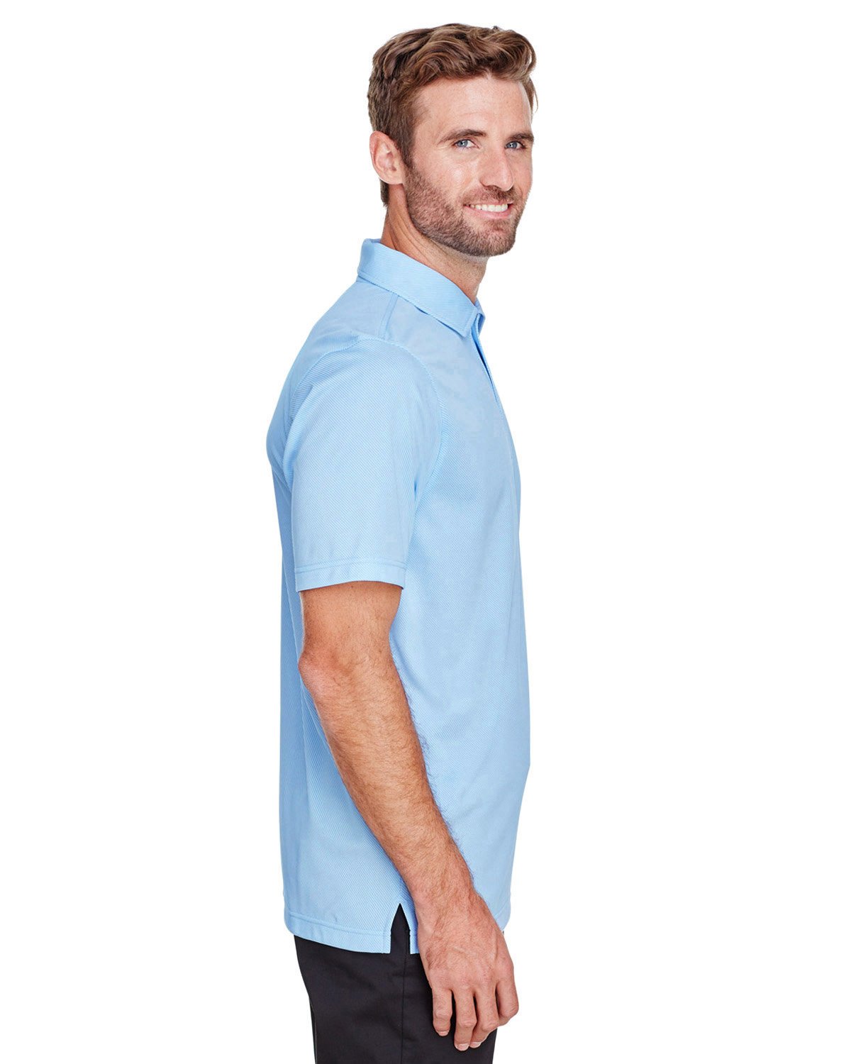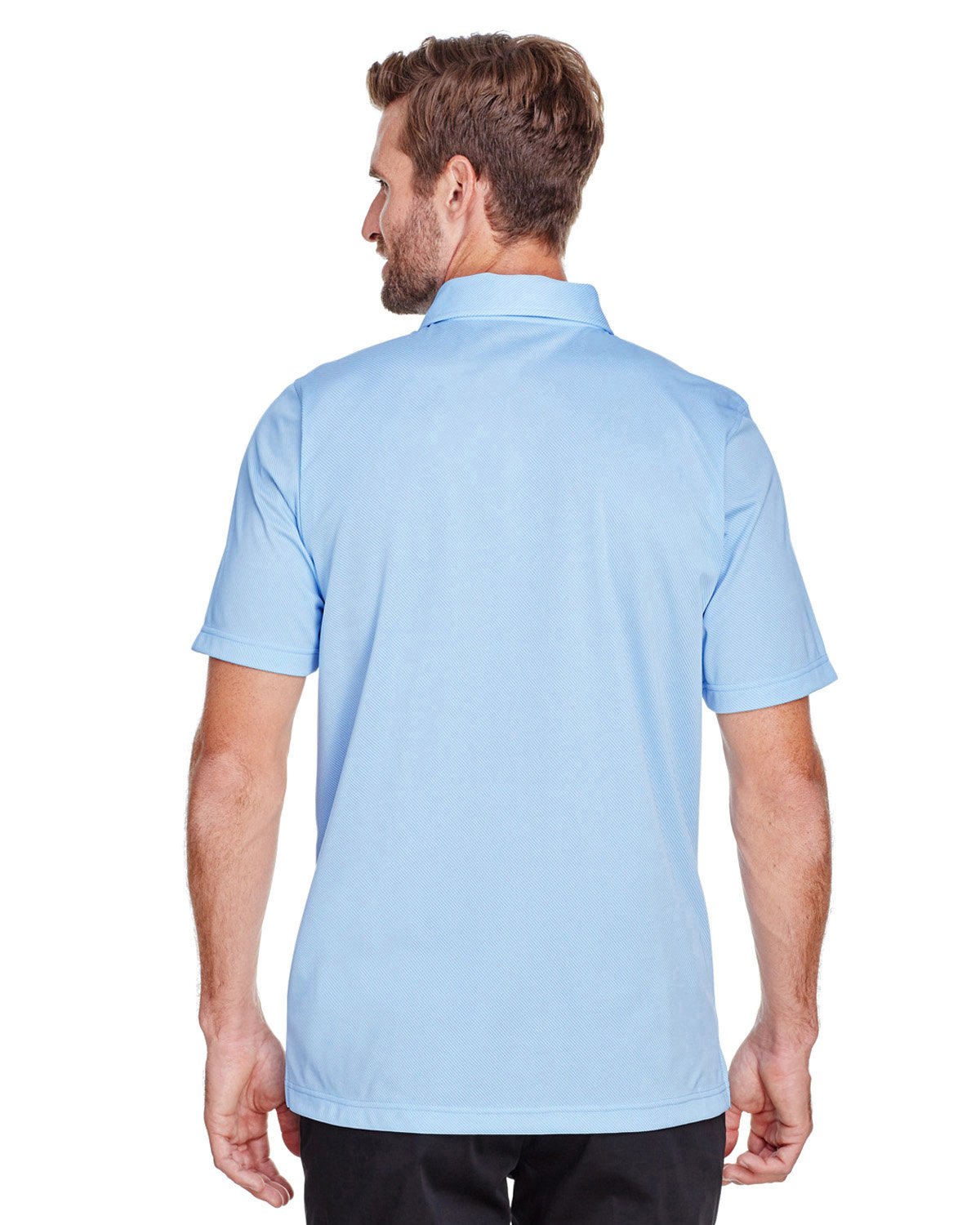4.4 oz/yd2 / 150 gsm, 100% polyester two-tone twill with moisture-wicking and UV protection performance; Self fabric collar with built-in collar stays; Heat-sealed label; Side vents; 3-button placket with dyed-to-match buttons