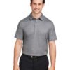 94% recycled polyester, 6% elastane; Moisture-wicking; UV resistant 40+ UPF; Four-way stretch; Three-button placket; Tonal speckled texture print