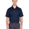 4.9 oz., 100% polyester; Anti-static; Moisture-wicking; UPF 30+ protection; Relaxed fit; Solid knit collar; 3-button clean-finished placket; Double-needle sleeve and bottom hems; tagless