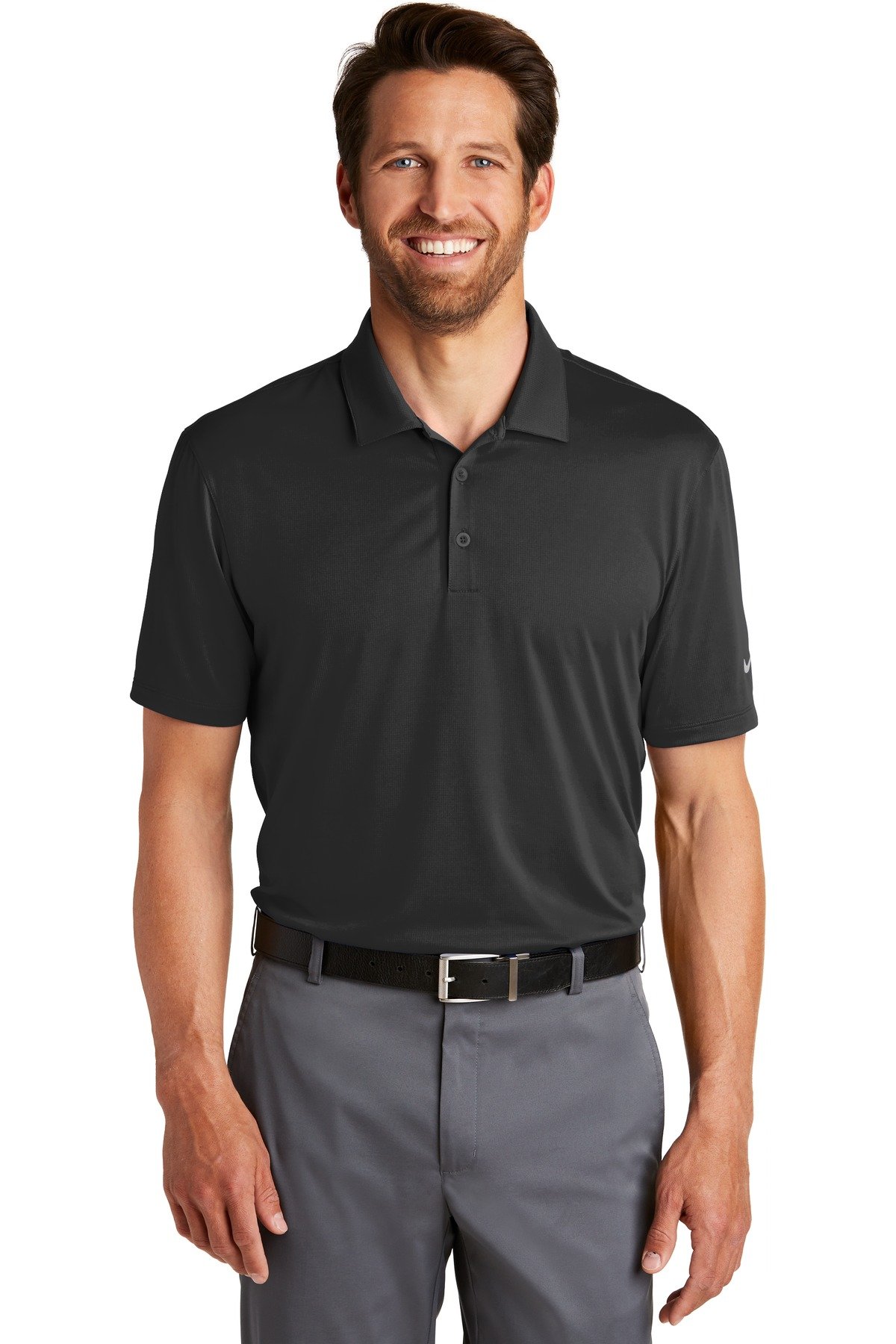 A modern tribute to the unparalleled Nikeheritage this sophisticated polo has a subtle grid-like texture and is engineered with Dri-FIT moisture management technology. Design details include a self-fabric collar three-button placket with dyed-to-match buttons and open hem sleeves. The contrast heat transfer Swoosh design trademark is on the left sleeve. Made of 4.2-ounce 100% polyester Dri-FIT fabric.