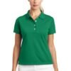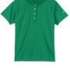 Tailored for a feminine fit this style truly performs with Dri-FIT moisture management technology. Design features include a flat knit collar four-button placket and open hem sleeves. Pearlized buttons are selected to complement the shirt color. The contrast Swoosh design trademark is embroidered on the left sleeve. Made of 5.3-ounce 100% polyester Dri-FIT fabric.