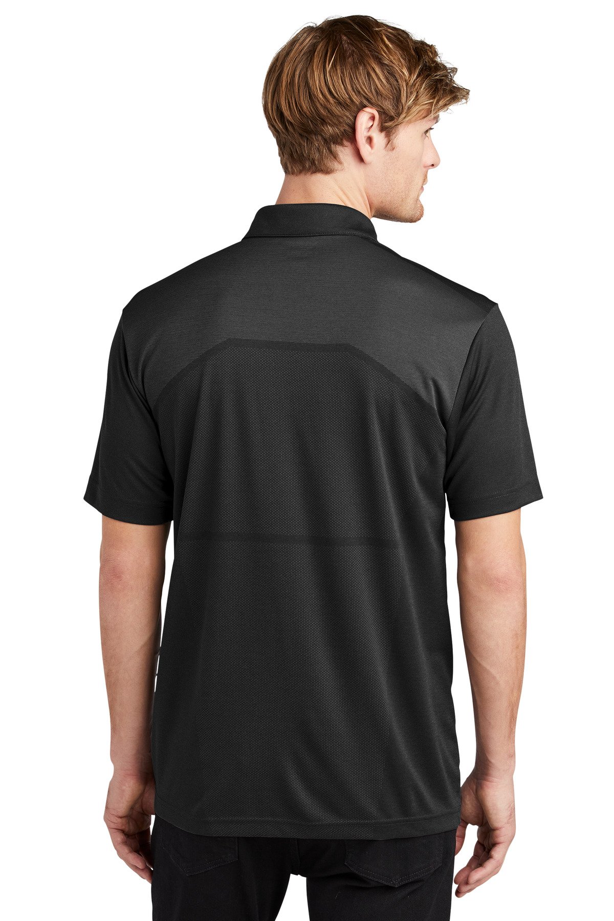 Engineered with an innovative pattern map look this performance polo stands out from the rest. 4.3-ounce 100% poly double knit jacquard jersey with stay-cool wicking technology OGIO heat transfer label for tag-free comfort Self-fabric collar 3-snap placket Pattern mapping on top front panel and back panel Set-in open hem sleeves Heat transfer O on left sleeve