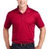 Smooth micropique polos that wick moisture and resist snags. 3.8-ounce 100% polyester tricot Snag resistant Moisture-wicking Double-needle stitching throughout Tag-free label Taped neck Flat knit collar 3-button placket with dyed-to-match rubber buttons Set-in open hem sleeves Armhole accent Side vents *Due to the nature of 100% polyester performance fabrics special care must be taken throughout the screen printing process.
