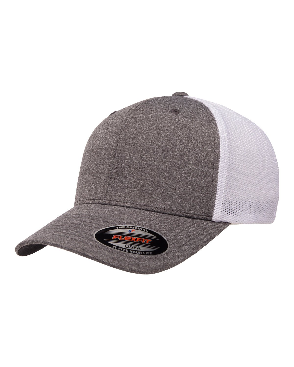 92% Polyester, 8% PU Spandex; Eight-row stitching on bill; Hard buckram backed front panels; Polyester/spandex mesh on side and back; The original Flexfit® sweatband retains shape; Black underbill ; Ermacurv® visor