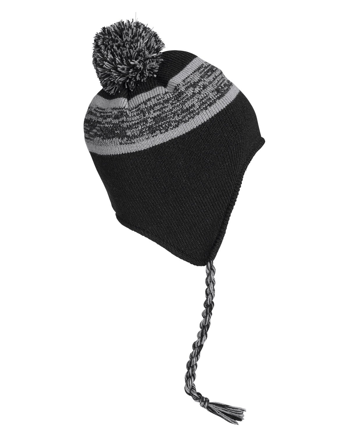100% acrylic knit; Microfleece lining; Heathered pom; Braided tassels; J America labeling; One size fits most