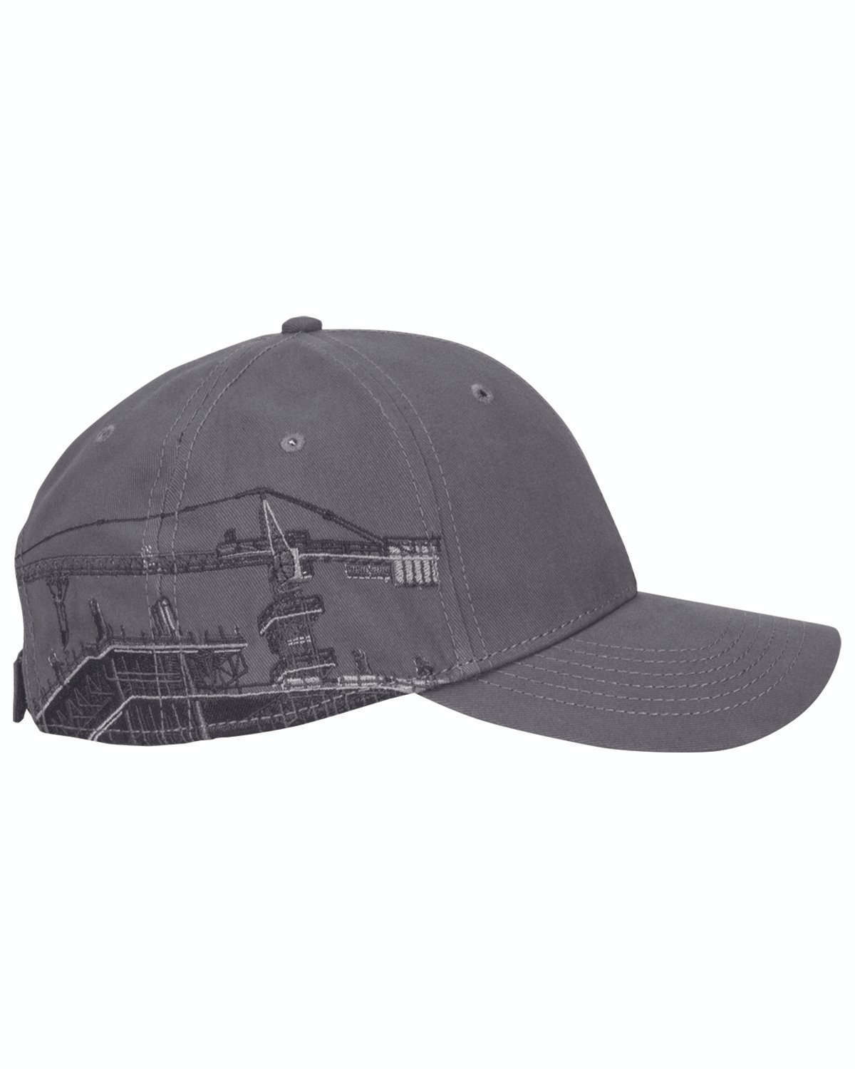 100% brushed cotton twill; Structured front; Pre-curved visor; Hook and Loop backstrap; Detailed embroidered industry scene on right side; Dri Duck embossed leather patch left of back vent; Imported; Minimum Order Quantity: 24pc/style/color